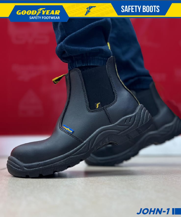 The Goodyear JOHN-1 Safety Boot delivers a polished, no-lace pull-on design that’s perfect for supervisors, site managers, or anyone balancing fieldwork with office duties. Built with a durable yet visually appealing PU leather upper, it offers a sleek black finish while packing serious protection including steel toe, puncture-resistant midsole, slip resistance, and electric hazard defense. Its clean profile transitions effortlessly from the construction site to site meetings, offering safety without sacrificing style or efficiency.